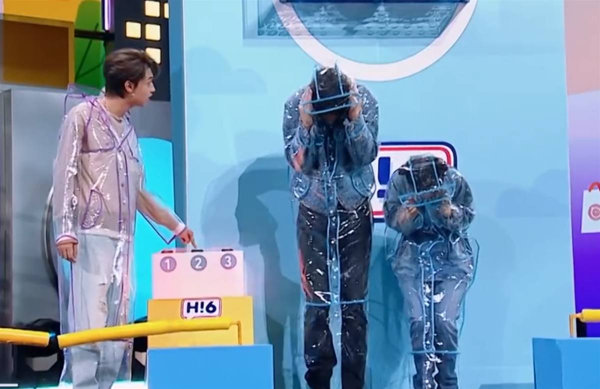 在這個過程中吳倩和張彬彬被秦霄賢針對,屢次輸掉游戲接受懲罰,即穿著雨衣淋水。